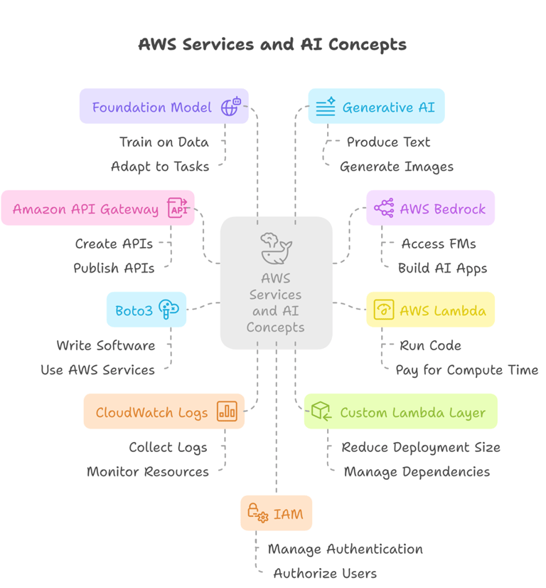 The Master Chef (The AI Brain): Inside our Lambda code, we'll tell it to talk to the real star of the show: the Amazon Bedrock service. This is where all the powerful Foundation Models (FMs) live. These FMs are the actual AI brains that can understand our blog topic and write the blog post.